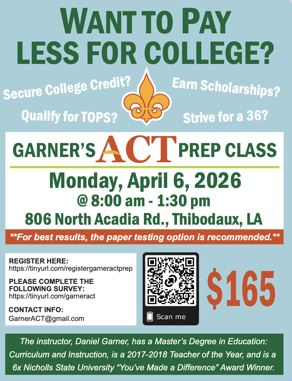 eLearning Academy is excited to partner with Daniel Garner to offer his ACT Prep Group class at our Thibodaux site!